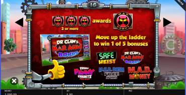 The Bonus symbol entitles you to participate in the Dr. Claw's M.A.D. Agent prize draw. It consists of a variety of bonus rounds. To determine which one you will participate in, spin the reel. The options are as follows: