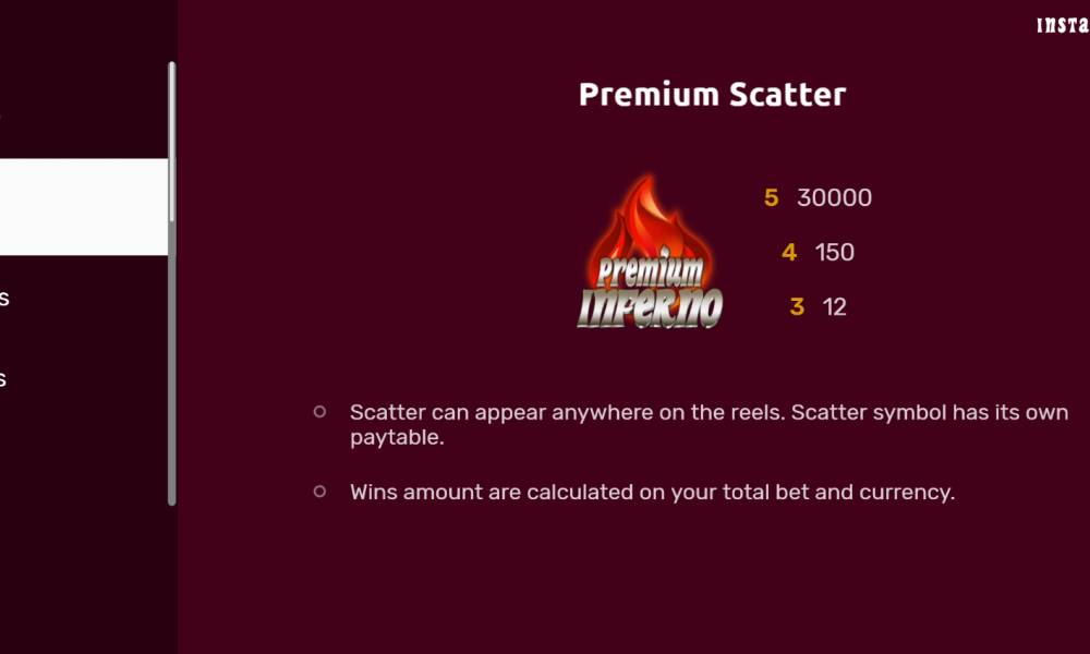 Play Instant Inferno online at reliable online casinos that will ensure fair conditions and safety of your bets. Choose a reputable online casinos where you can enjoy this slot with the confidence of transparency and reliability. Great winning opportunities and bonuses are waiting for you here, which will make the game even more exciting.