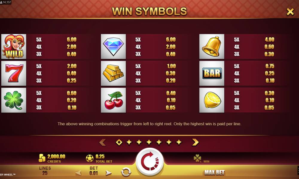 The Jester Wheel slot machine from the Rabcat provider has a 5x3 playing field with 25 lines.