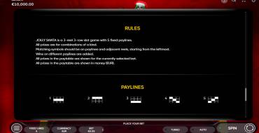 The slot is designed quite amusingly, with the seductive Santa, aka Joker Jolly, getting coins under his "heel" with erotic exclamations, chuckling and firing a gun at players during the bonus game. This encourages to keep the fun going by targeting the gold coins and jackpot. I recommend trying to rip a big score under the guidance of the reckless Jolly.