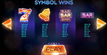 The reels depict fruit, BARs, bells and sevens. They mimic signs made of neon tubes. Identical elements often follow each other in columns, falling out in stacks.