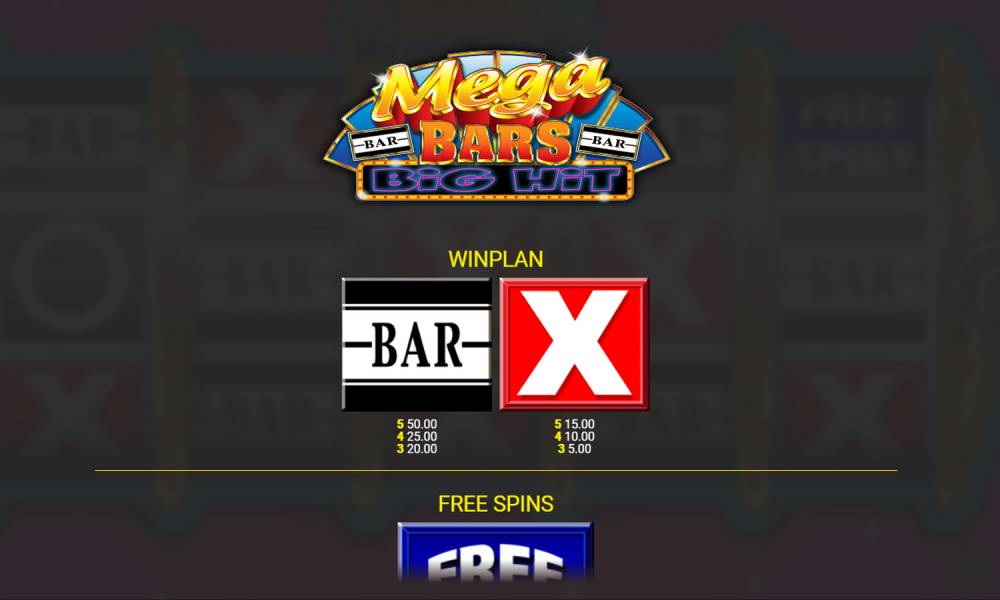 The Mega Bars: Big Hit Jackpot King online slot features 5 reels with 3 rows each. The three symbols involved in the game are BAR, a white cross on a red background and Free Spins. Circles on the field denote empty cells. The payout is made on 10 fixed lines from left to right in a row. BAR symbol brings x20, x25 and x50 of the bet for 3, 4 and 5 pieces. White cross for the same amount gives x5, x10 and x15. The total range of bets per spin 0.1-10 euros. Maximum winnings do not exceed x50000 of the amount bet.