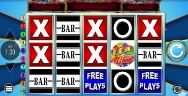 The rules of Mega Bars Fortune Wheel Jackpot King slot are quite simple. The playing field consists of 5 reels and 3 rows with 10 fixed paylines. Winning combinations are formed when three or more of the same symbols fall on adjacent reels. The chain can start from 1, 2 or 3 columns. The game involves only 5 types of signs. Of these, two are basic: "X" brings x50, x100 and x150 of the bet, and "Bar" - x200, x250 and x500. The remaining symbols are special, they activate bonus features. Users can count on free spins and Wheel of Fortune, as well as progressive jackpots. The maximum winnings are x50000 from the bet, which is chosen in the range of 0.1-10 euros.