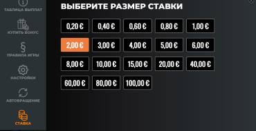 You can make the bet before every spin. The minimum bet is 20 cents, and the maximum - is 100 dollars per spin.