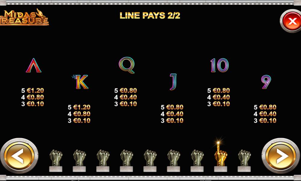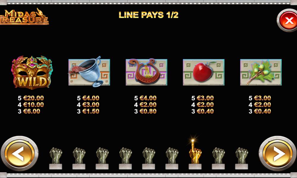 Those familiar with the myths of ancient Greece know that the legendary King Midas was given the ability by the god to turn anything he touched into gold. It's not surprising that such a theme interested the slot developers at Kalamba Games. The slot they released at the end of June 2019 is so called: Midas Treasure. In it, the gambler can try to increase his bet by 1000 times - this is the limit the developers have set on the maximum winnings.