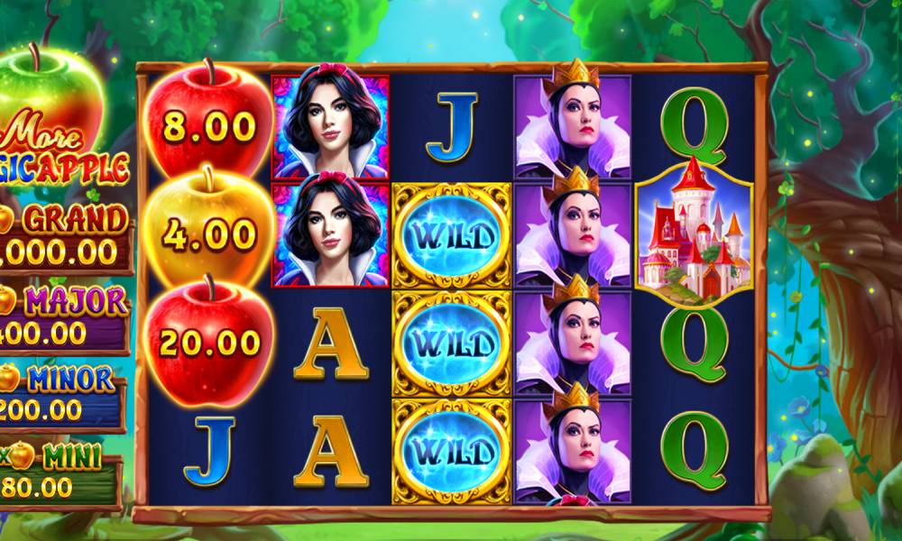 In 2023, provider 3 Oaks presented a new slot machine from the line of slots about Snow White and the Poisoned Apple - More Magic Apple: Hold and Win. It features an improved freespins round, more opportunities for big wins during respins and increased jackpots. Users will be immediately captivated by the lucrative games as well as the gameplay itself. Beauty Snow White, the wicked witch and the prince - these are the active characters that often fall out on the reels and bring profit. Playing is interesting, easy, there are no difficulties with the control, and bonuses are activated often.