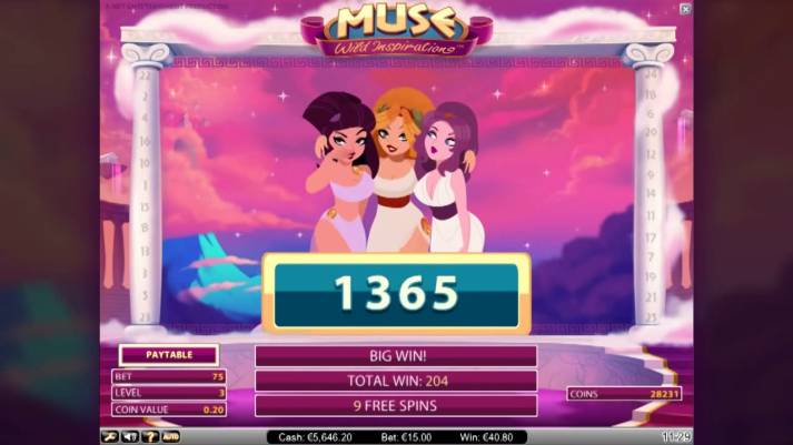 The most interesting particularity of Muse: Wild Inspiration video slot is options of the Wild symbol, which can be expanded for a whole reel, trigger a repeated spin or double the payoff by the combination. Moreover, free spins are also high beneficial for the players. This game also has quite a high payback index and a pretty graphics.