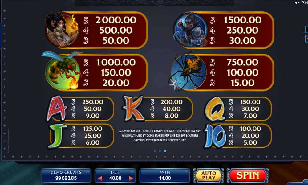 The theoretical return of Ninja Magic slot is average, and volatility is high. Having evaluated these parameters, players start using strategies. But it is necessary to know in advance that such an approach can not affect these parameters. The principles of the slot are as follows:
