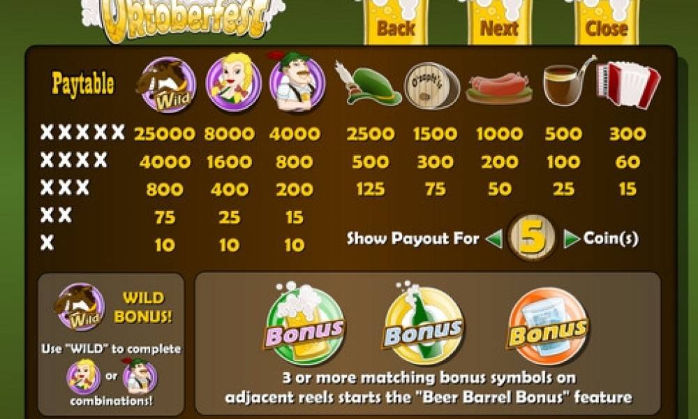 The Oktoberfest game has an average theoretical return, so the player should be prepared to encounter failures in long series. With medium volatility, the machine pays out medium-sized amounts with medium frequency.