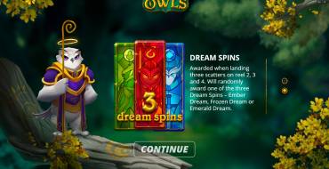 Emerald Dream player gets 5 free spins where the Emerald Shard and Emerald Book symbols turn into the Grove Owl symbol on each spin.