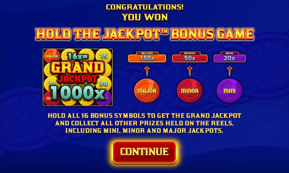 The Hold the Jackpot bonus game is activated when you hit 6 or more bonus symbols (Gold Coins). In this bonus game, you need to collect coins and jackpots to win up to 2145x your bet.