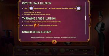 | Bonus games | Expanding Wild, Expanding Wild Free Games, Synced Reels, Crystal Ball, Throwing Cards, Illusion Countdown, Magic Hat Re-Spins |