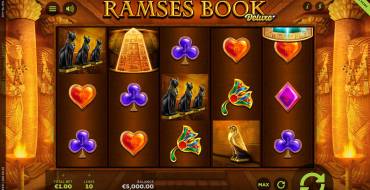 Ramses Book Deluxe slot machine has 5 reels, with three symbols on each reel. Combinations are stacked from left to right from the first reel in a row on fixed lines (5 or 10 at the user's choice). The betting range is 0.05-150, and the maximum win is x10750 (which is a lot for a slot with standard mechanics without tricked-out features). Players can expect 4 senior symbols, giving payouts from two pieces, and 5 junior symbols, giving rewards from three pieces. Online slot bonuses are represented by a wild symbol and free spins. There is also win doubling game in two variations.