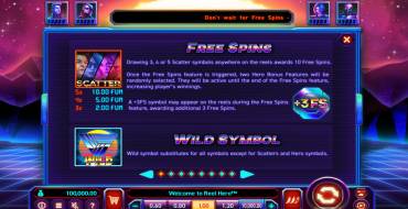 Free Spins are activated when three or more Scatter symbols appear. The player receives 10 Free Spins, during which the features of all four heroes (Altiera, Rich, Violet and Jax) can be activated randomly, adding laser shots, re-spins, multipliers and cloning Wild symbols.