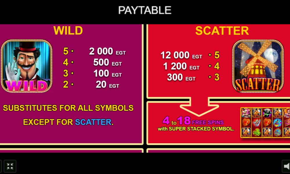 Wild symbol - pays for 2-5 pieces on a line. Replaces all symbols except the image of the mill.