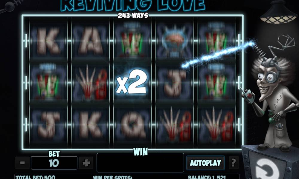 Hearts in love will not be separated even by death. The mad scientist from Reviving Love video slot has not lost hope after losing his fiancée. He ventures into an incredible experiment in the spirit of the experiments of Victor Frankenstein. Will he be able to bring his beloved back to life? Launch Spinomenal's game to find out how events unfolded.
