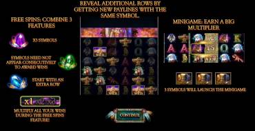 As the counters fill up, players have the opportunity to combine all three features. If ten rows are opened on the reels, it means doubling the winnings. With each next unlocking of the entire playing field, the multiplier increases by one.