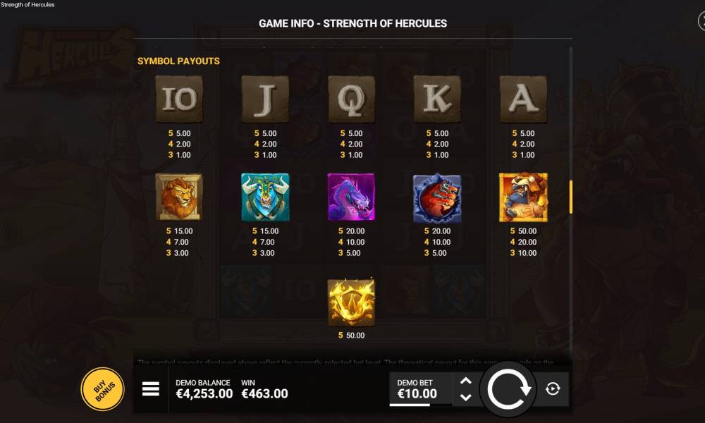 Since the demo is available for free and without registration, the only cost is a little bit of time, but in return the user gets a full understanding of the game. Despite the fact that the rules of Strength of Hercules are quite simple and very interesting, the best way to master them is practice, which allows you to immediately test and consolidate your knowledge.
