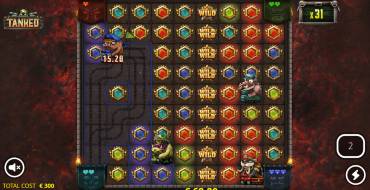 In the normal game mode, the reel field in Tanked consists of 6 columns arranged in a 4-6-6-6-6-6-6-6-4 pattern. Combinations in the slot are replaced by clusters of symbols touching diagonally or vertically. The payout table takes into account each symbol separately, with a mathematical progression. In total, there are 4 row symbols in the machine, and clusters are also used as directions for the necessarily present on the playing field of commanders. Numerous bonuses and multipliers are activated by the method of collecting special symbols "boosters", which includes the provider's signature mechanics.