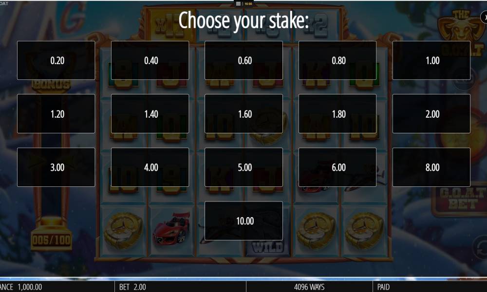 The G.O.A.T slot machine from the Blueprint provider is about animals. If you are lucky, you can get large prizes, up to 50,000 bets.