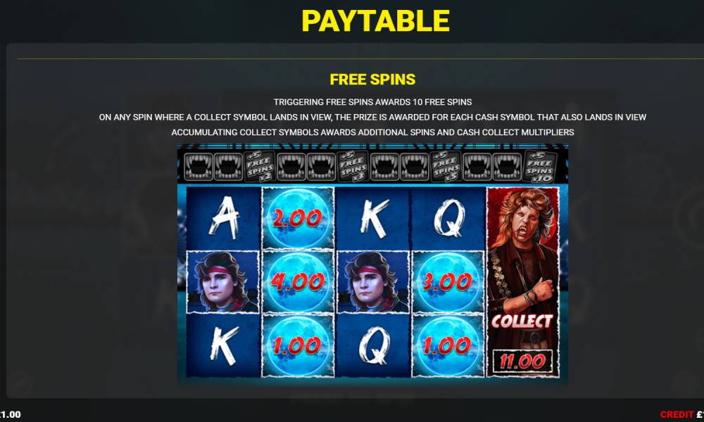 Four fixed jackpots people can win in the online slot The Lost Boys. They fall out in the form of Cash symbols. If there is a collect symbol, the player gets a prize. Its size depends on the current bet in the round: