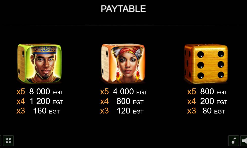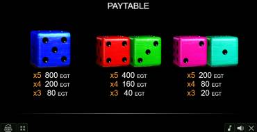 Water Dice Respin. The round is triggered when 5 or more Scatter symbols appear on the field. They freeze in their places and turn into water dice with their money values. The player gets three respins, during which only symbols with different amounts can stop. If at least one symbol falls out, the spins are resumed up to three, if not - one is removed. The round goes until three respins are played or until the entire field is filled with water cubes. All cash values are summed up and paid out.