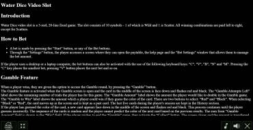 Additional Scatter Symbol Chance. This is an additional opportunity to activate the Water Dice Respin round. When less than 5 Scatter symbols stop on the field, the reels can spin additionally to guarantee more. This feature does not always work.