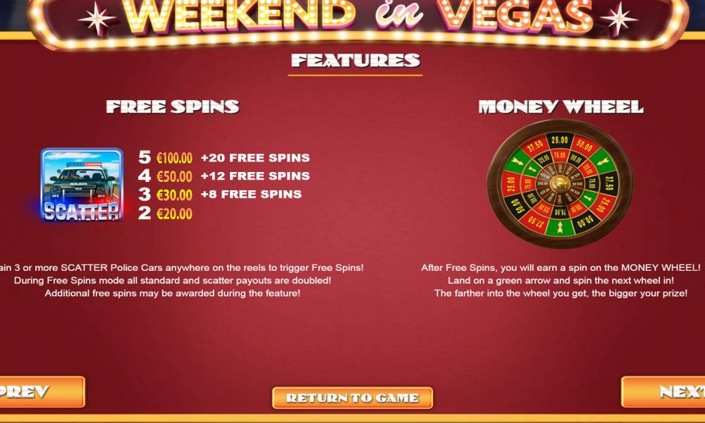 The bonus features of Weekend in Vegas slot are triggered very often.