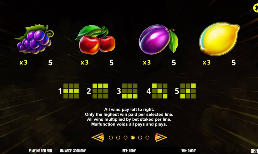If you want to get a payout you must create a combination of 3 or more identical symbols on the pay lines. All combinations must start from the first reel and go from left to right. It is important that the combination is continuous, that is, it follows from left to right sequentially.