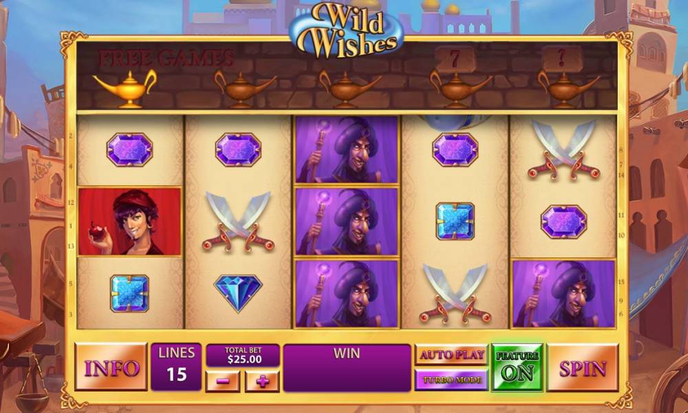 An interesting online video slot «Wild Wishes» provided with unusual features and a unique design was presented by Playtech company recently. The model has basic and bonus gaming modes with different number of active lines and symbols for each of them, diverse prize options, as well as much more other features, carefully described in the following review by Casinoz. The game is devoted to ancient tales about the Aladdin and a genie from the lamp who lives your wishes.