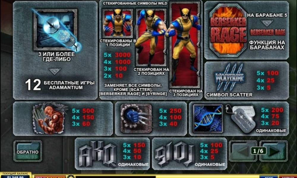 Wolverine video slot has numerous interesting options, including the special symbols, Berserker Rage function, free spins, four progressive jackpots by marvel and much more.